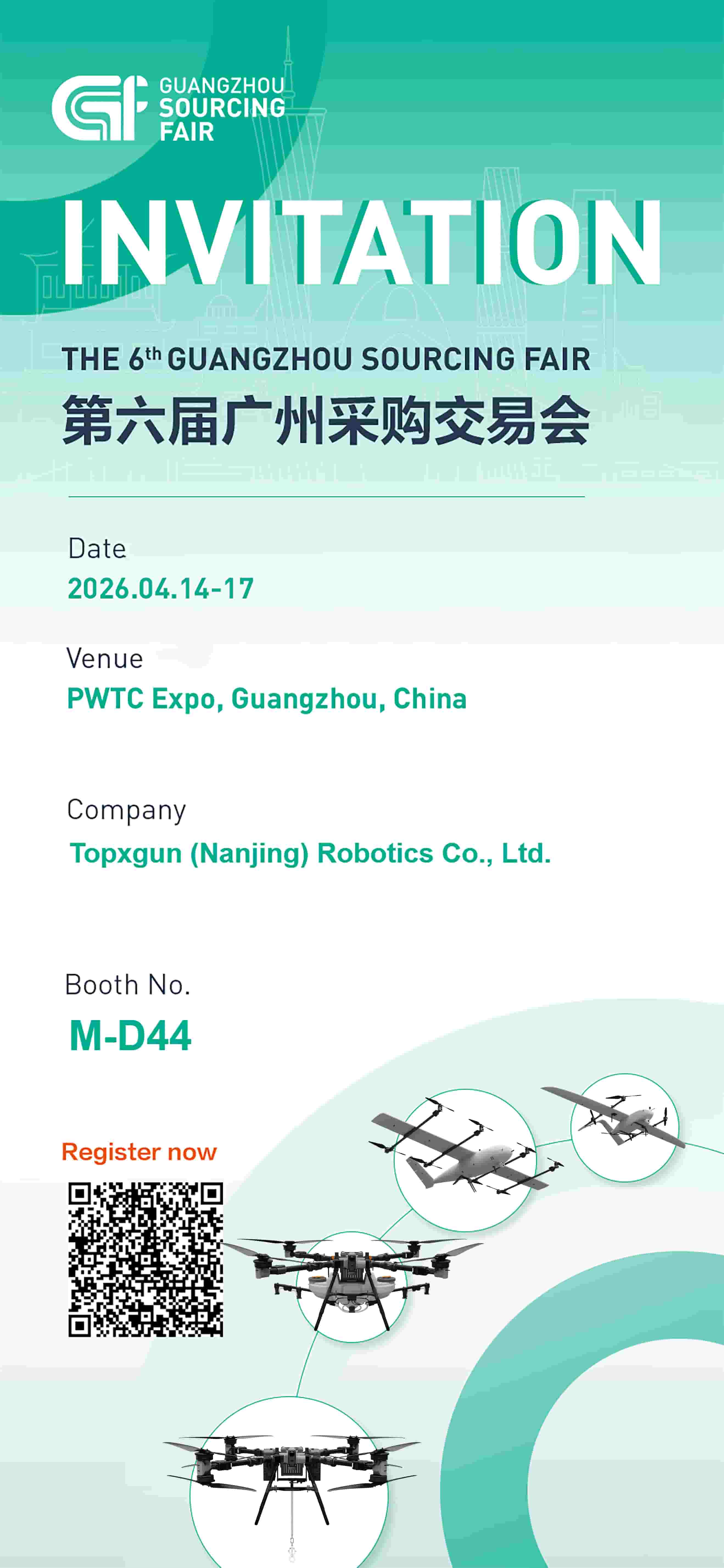 TopXGun Robotics will be exhibiting at the upcoming 6th Guangzhou Sourcing Fair, where we will present our latest UAV technologies and integrated solutions to global partners and industry professionals.